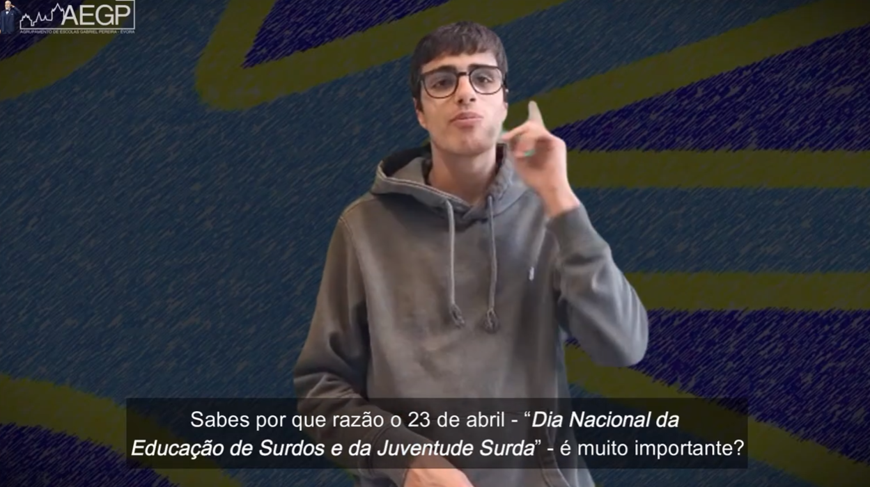 No âmbito desta comemoração, a Escola Secundária Gabriel Pereira (ESGP) dinamizou, durante o mês de abril do ano letivo 2025/2026, uma atividade desenvolvida por um aluno Surdo do 11.º Ano, do Curso Profissional de Técnico de Gestão e Programação de Sistemas Informáticos. O aluno realizou um vídeo alusivo a esta data, no qual apresenta a história e a origem desta data comemorativa.