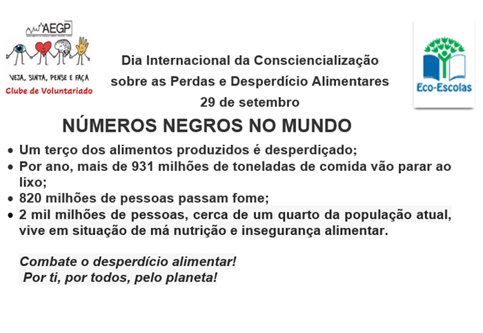 AEGP Dia Internacional da Consciencialização sobre as Perdas e Desperdício Alimentares 29/09/2022 - 09:38 Artigos Relacionados Procedimento concursal para o cargo de Diretor(a) 28/04/26 Dia Nacional de Sensibilização Contra o Ciberbullying 27/04/26 Concurso - Técnicos Superiores e de Sistemas e Tecnologias de Informação 24/04/26