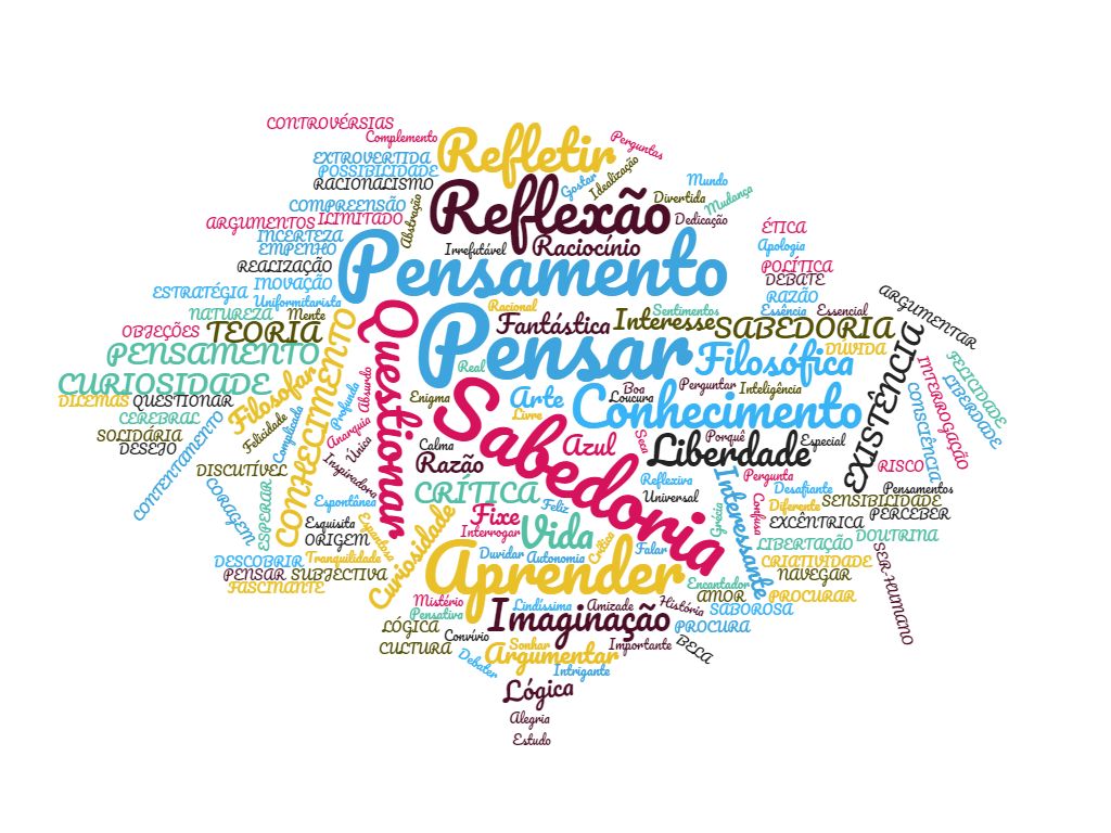 Trabalho realizado com base numa recolha de palavras alusivas à Filosofia nos 10º A, B, C, D, E, F, 11º A, B, C e alunos do ensino básico (Câmara, Rossio, Comenda e Heróis do Ultramar)
