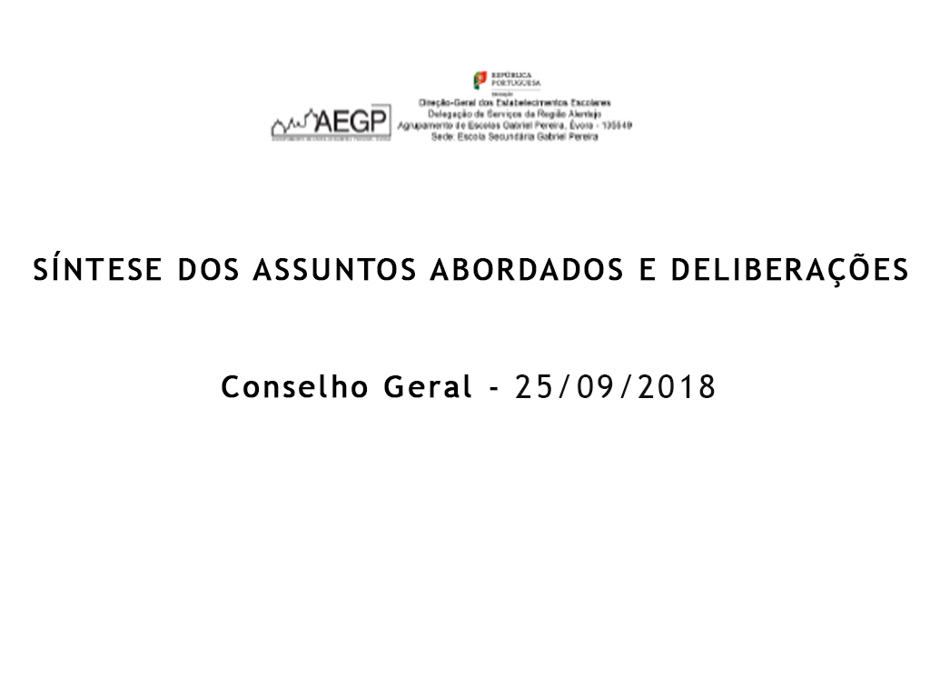 AEGP Informações nº 4 - Conselho Geral 03/10/2018 - 12:44 Ficheiros Informações nº 4 - Conselho Geral (560.61 KB) Artigos Relacionados Informação - Greve dia 17/04/2026 17/04/26 Alunos e aprendentes do AEGP em mobilidades Erasmus+ 14/04/26 Dádiva de Sangue - 5 de maio de 2026 - ESGP 13/04/26