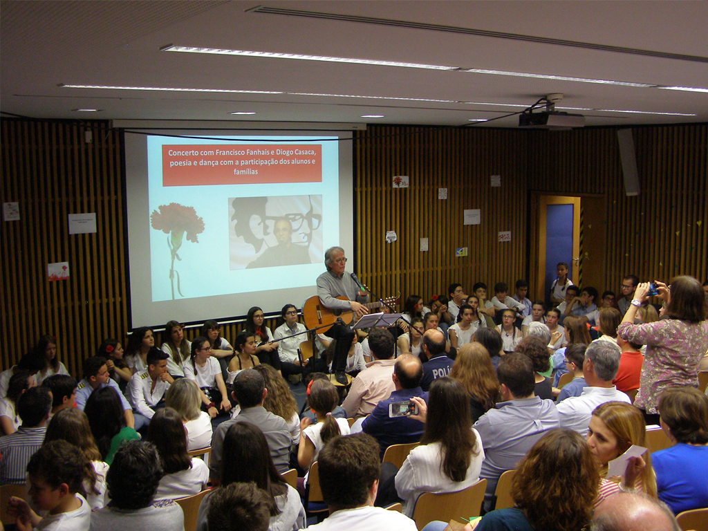 Integrado na Semana Cultural do Agrupamento de Escolas Gabriel Pereira teve lugar um espetáculo de poesia, dança e música que contou com a participação de Francisco Fanhais, que nos trouxe a música que simboliza a conquista da democracia. Relembrámos Zeca Afonso e muitos outros poetas e escritores que defenderam a causa da liberdade. A todos eles devemos uma homenagem sincera e emocionada. Esse tributo foi efetuado pelos alunos, professores das Equipas Pedagógicas e famílias das turmas A e B do 9.º ano e A e E do 12.º ano de Escolaridade.