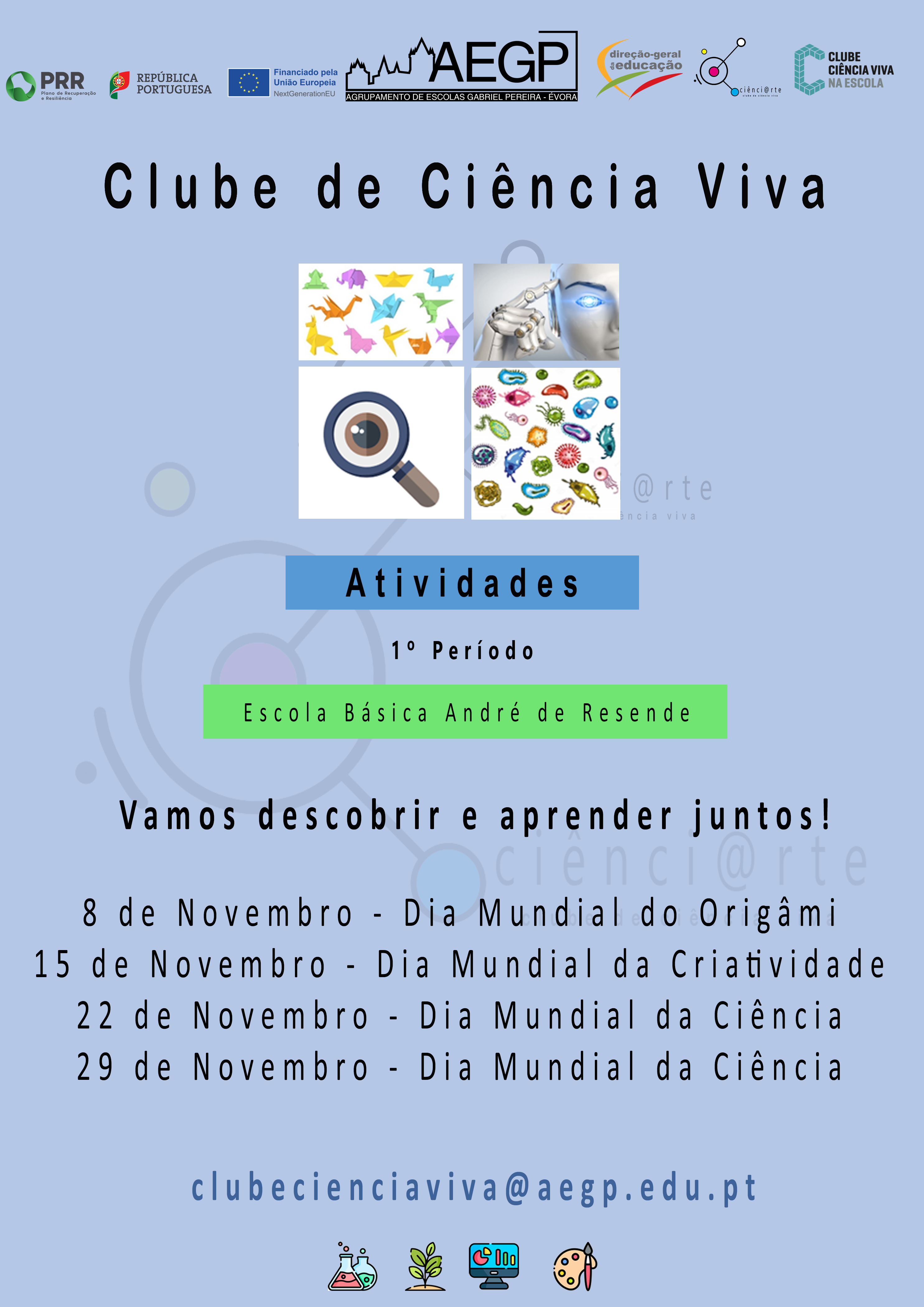 Atividades do 1º Periodo do Ciênci@rte - Clube de Ciência Viva