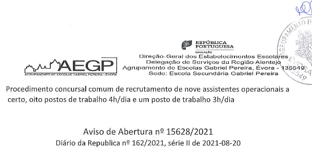 AEGP Aviso de Abertura nº15628/2021 - Lista de Candidatos Admitidos e Excluídos 14/09/2021 - 12:22 Ficheiros Lista de Candidatos Admitidos e Excluídos a Concurso (375.14 KB) Lista Graduada de Candidatos Admitidos a Concurso (132.55 KB) Artigos Relacionados Candidatura aberta para mobilidade individual Erasmus+ 04/03/26 CTE Informática - O Alentejo ligado ao futuro 16/02/26 Inauguração do Centro Tecnológico Especializado - Informática 13/02/26