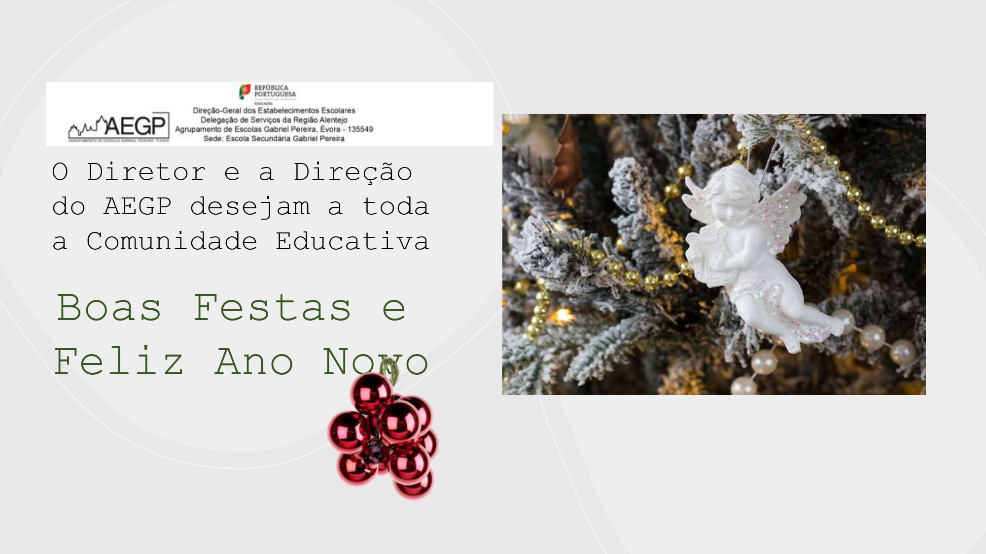 AEGP Boas Festas 15/12/2023 - 15:50 Artigos Relacionados Candidatura aberta para mobilidade individual Erasmus+ 04/03/26 CTE Informática - O Alentejo ligado ao futuro 16/02/26 Inauguração do Centro Tecnológico Especializado - Informática 13/02/26