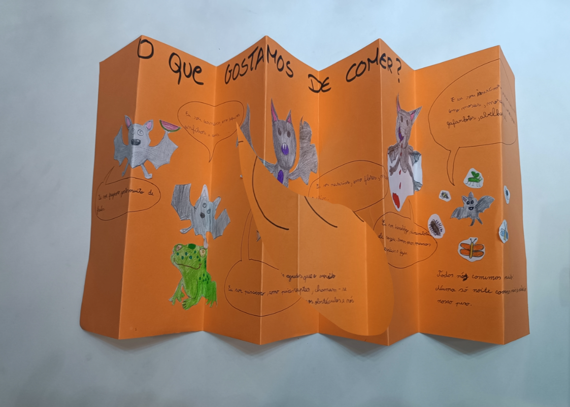 A próxima fase foi cada grupo organizar as suas descobertas e transpô-las para um livro objeto. Os livros foram expostos na Exposição "O mundo ao contrário" que está patente nos espaços escolares para que os restantes alunos saibam afinal "Como é a vida dos morcegos?".