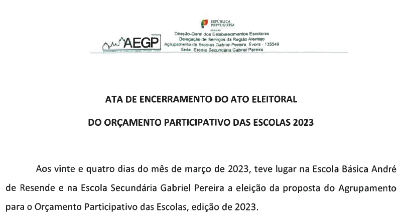 AEGP Resultados OPE 2023 24/03/2023 - 19:43 Ficheiros Resultados OPE - 2023 (42.46 KB) Artigos Relacionados Candidatura aberta para mobilidade individual Erasmus+ 04/03/26 CTE Informática - O Alentejo ligado ao futuro 16/02/26 Inauguração do Centro Tecnológico Especializado - Informática 13/02/26
